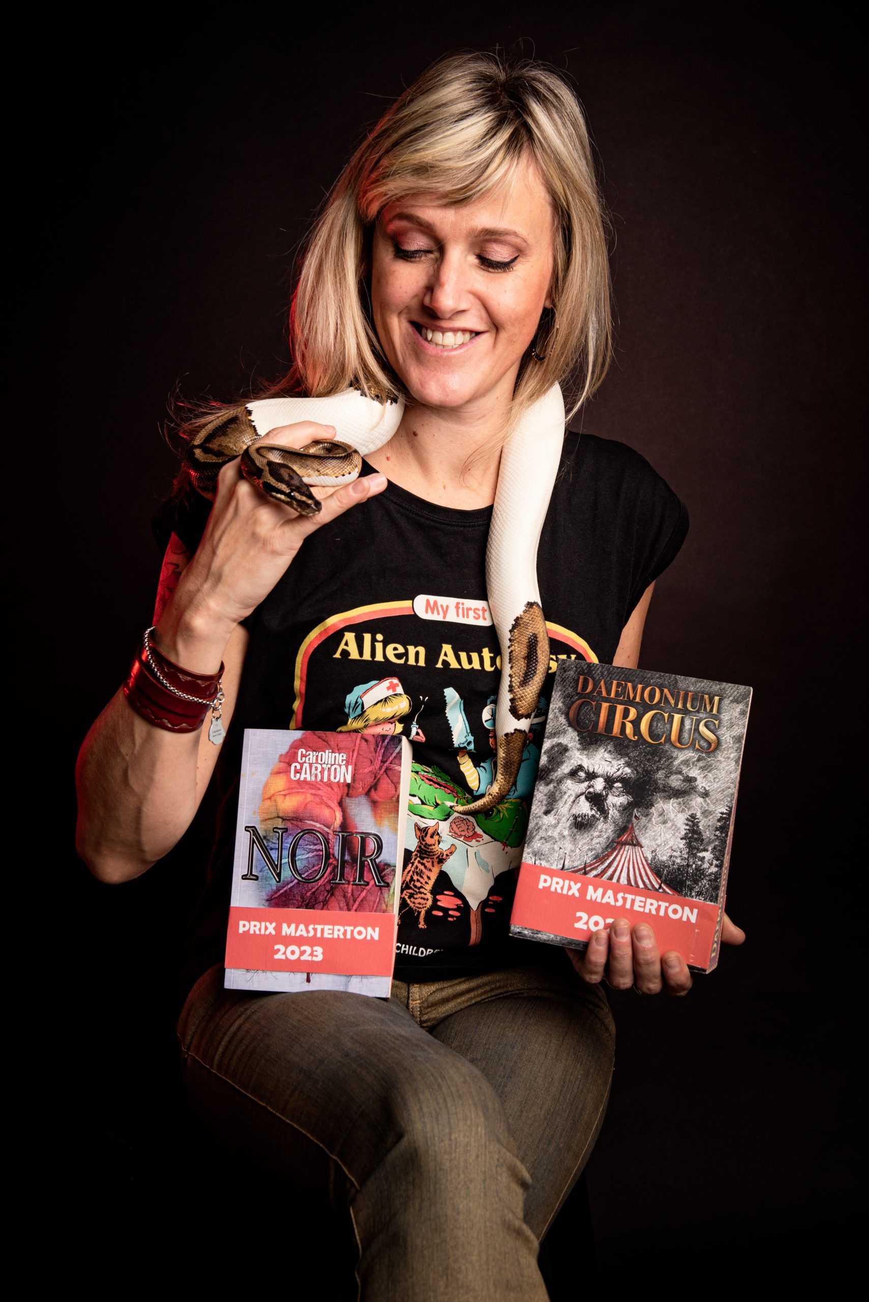 Récompensée par le Prix Masterton à deux reprises — en 2023 pour NOIR, puis en 2025 pour Daemonium Circus — Caroline Carton s’affirme comme une voix singulière et percutante de la littérature horrifique fantastique.
